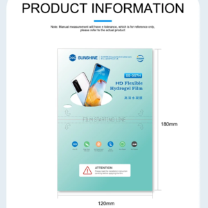 Protege tus dispositivos con las láminas de hidrogel HD SS-057H de Sunshine, diseñadas para garantizar una cobertura precisa y una protección superior contra rasguños, impactos y marcas de uso diario. Este paquete incluye 50 unidades de láminas de alta calidad con código de 55 cortes. Es ideal para cubrir pantallas, traseras y cámaras de una amplia variedad de dispositivos electrónicos.